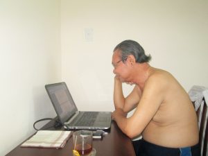 (Khôi Vũ xoay trần ra viết từ lúc 3 giờ sáng-ảnh riêng của BCT)